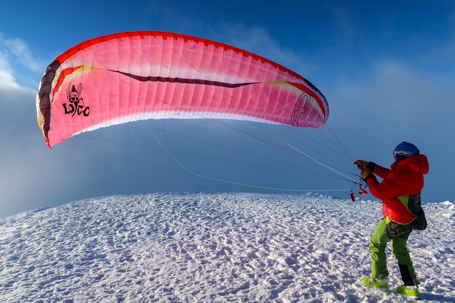 - Na odtokové hraně jsou našitá oka, která využijete pro uchycení padáku na svahu a zamezíte tak jeho uklouznutí (např. na sněhu atd.)