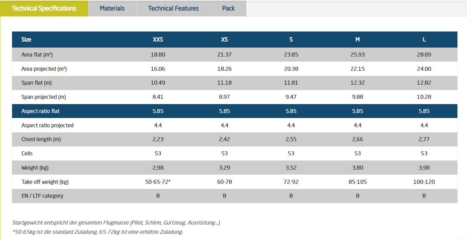 Technické detaily tabulky velikostí atd. najdete zde https://ad-gliders.com/project/soar-2-cloudhopper/?lang=en.